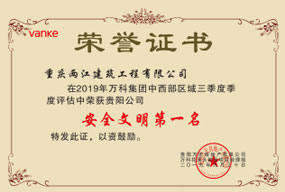 2019年万科集团中西部区域三季度评估安全文明第一名